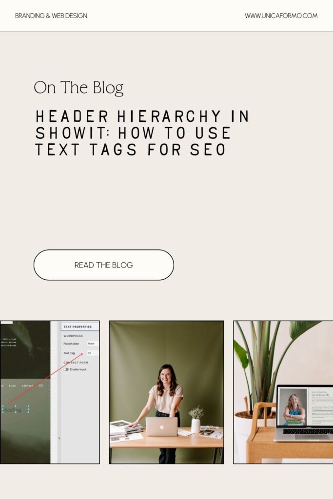 Header hierarchy in Showit is one of the most important things to get right if you want your website to perform well in search. I’m Jordin, a brand and web designer who’s been working with Showit for years, and I love this platform because it gives my clients so much creative freedom without needing to touch code. Photographers, wellness practitioners, and other service-based business owners especially love it because their websites can finally look and feel unique—while still being manageable on their own.